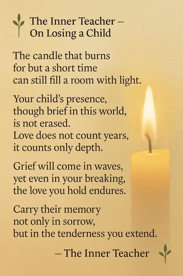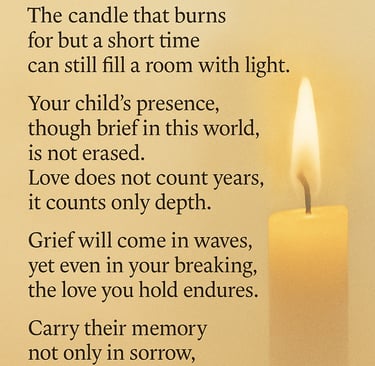 The loss of a child is a grief beyond measure. It feels unnatural, as though the order of life has been broken. Words cannot erase such pain, but sometimes they can sit beside it, offering a small light in the darkness.